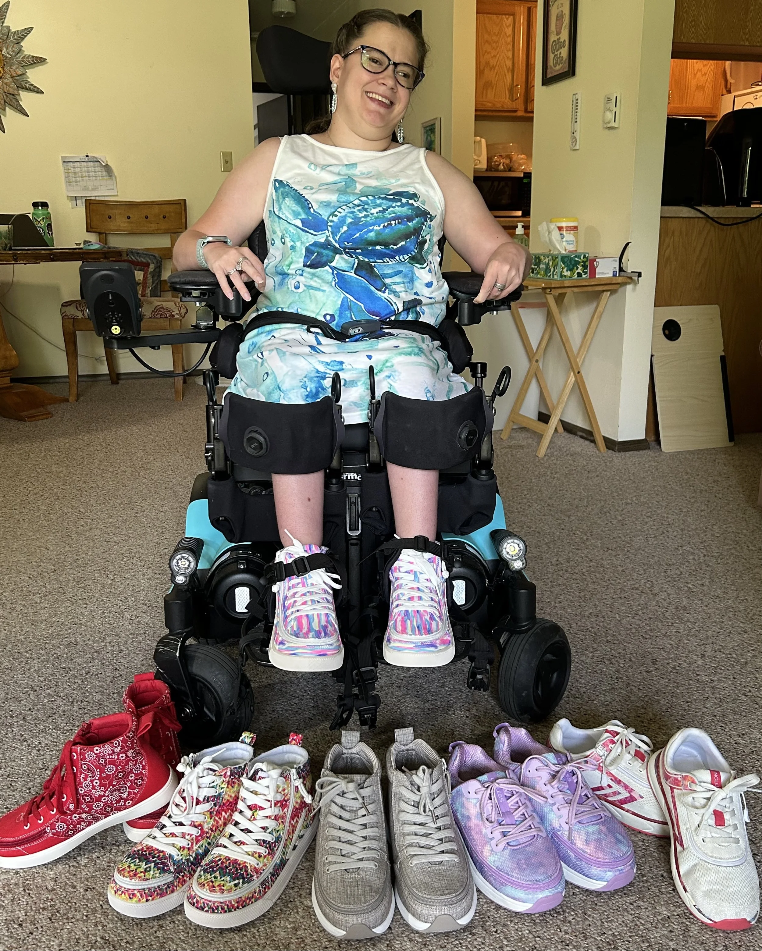 I glanced down at my wheelchair. At my feet, where I was wearing my ever-present Billy Footwear. And I replied, “Of course I do. It’s the only way I’m able to operate a computer efficiently for work or move around on my own.”